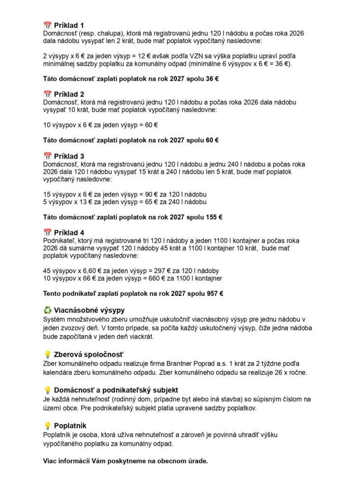 Množstvový zber odpadu v obci Vernár od 1. januára 2026.